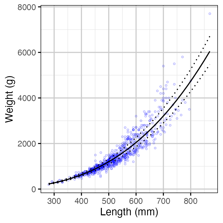 Figure 18. The weight-length relationship (with 95% CIs).