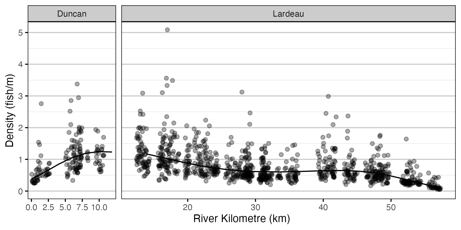 Thorley, J.L. and Amies-Galonski, E. (2023) Duncan Lardeau Juvenile Rainbow Trout Abundance 2023. A Poisson Consulting Analytic Appendix. URL: https://www.poissonconsulting.ca/f/1491296951.