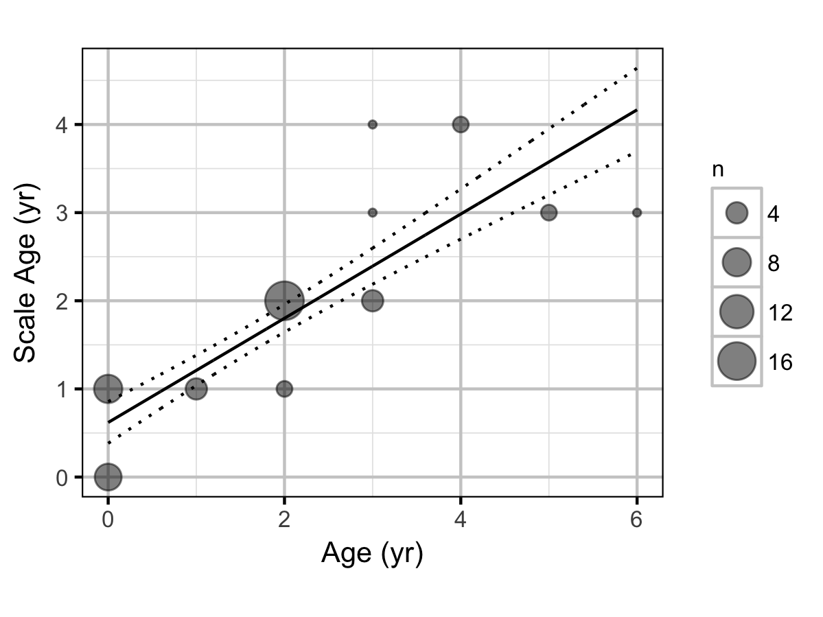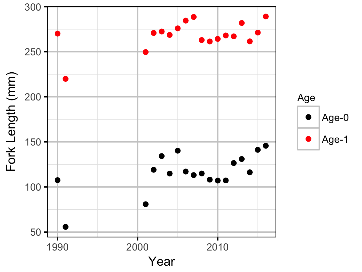 - There are three distinguishable age-classes for each species: Age-0, Age-1 and Age-2+.