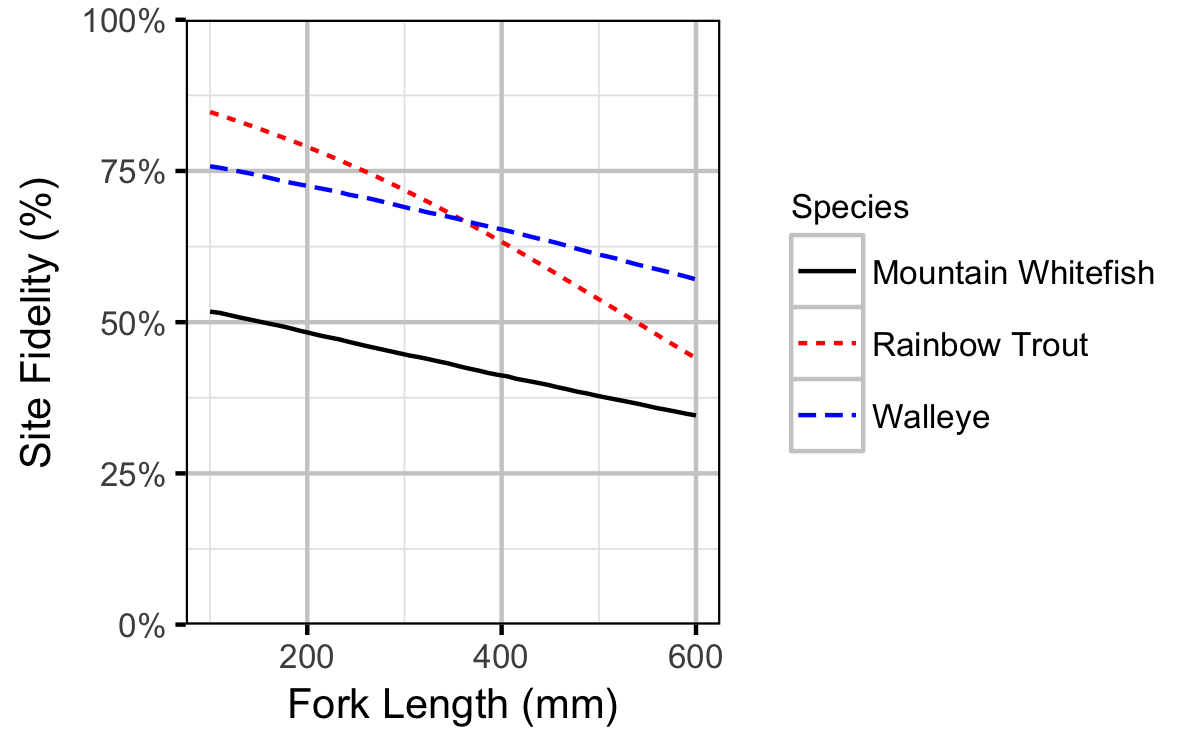 - The probability of a marked fish remaining at a site is the estimated site fidelity.