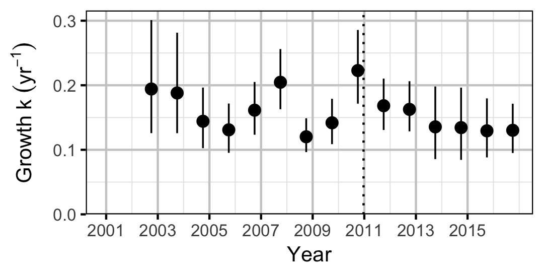 Fabens, A J. 1965. “Properties and Fitting of the von Bertalanffy Growth Curve.” Growth 29 (3): 265–89.